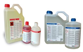 Рекомендации по разведению концентрата фиксажа G335 для машинной обработки пленки (в соответствии с пиктограммами, расположенными на канистрах).