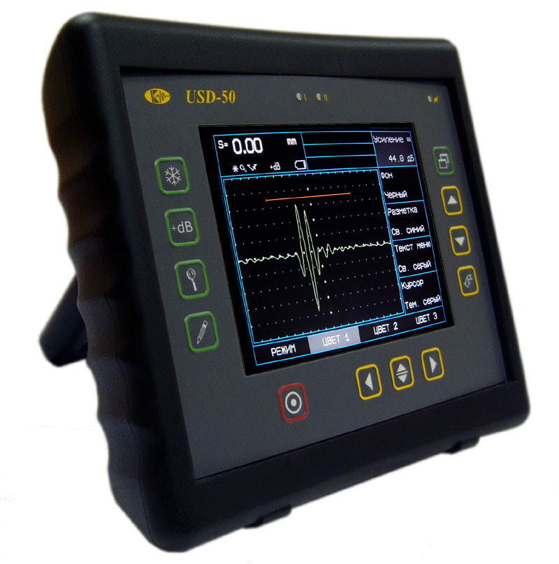 Универсальный ультразвуковой дефектоскоп с цветной TFT матрицей 640х480 и великолепным быстродействием - это наилучший выбор для неразрушающего экспертного контроля сварных соединений и основного металла. Мощный, легкий и портативный (масса всего 2 кг с аккумулятором), в эргономичном ударопрочном корпусе из ABS пластика, прибор устанавливает новый стандарт для современных ультразвуковых приборов ручного неразрушающего контроля. Ультразвуковой дефектоскоп УСД-50 позволяет измерять толщину изделий с большой точностью, выводить сигнал в виде А- и B-сканов и обладает всеми функциями по документированию результатов УЗ контроля.